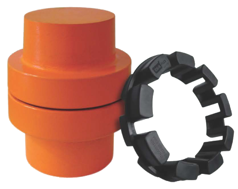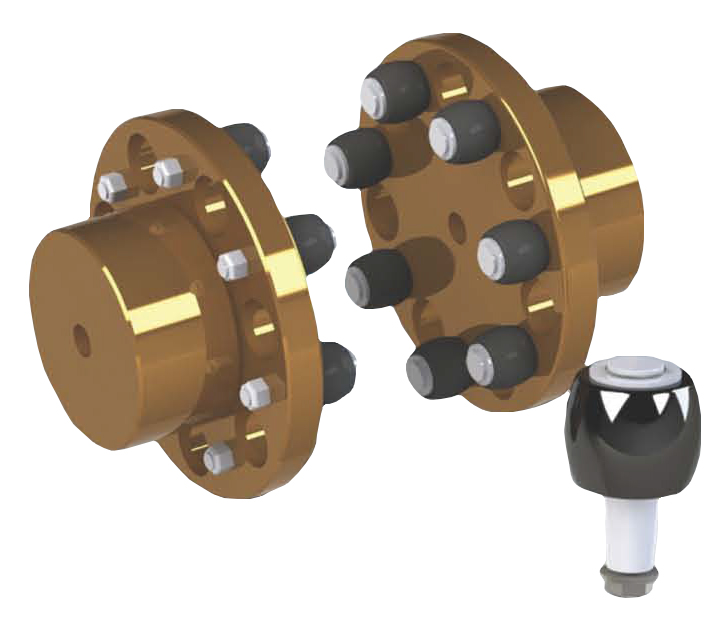 Os elementos elásticos em borracha perbunan garantem excelente absorção de impactos e vibrações, enquanto os cubos em ferro fundido GG-25 ou aço SAE 1020 oferecem resistência e longa durabilidade. O sistema dispensa lubrificação, e os acoplamentos podem operar em temperaturas entre –30 °C e +80 °C, mantendo eficiência mesmo em condições severas de trabalho.